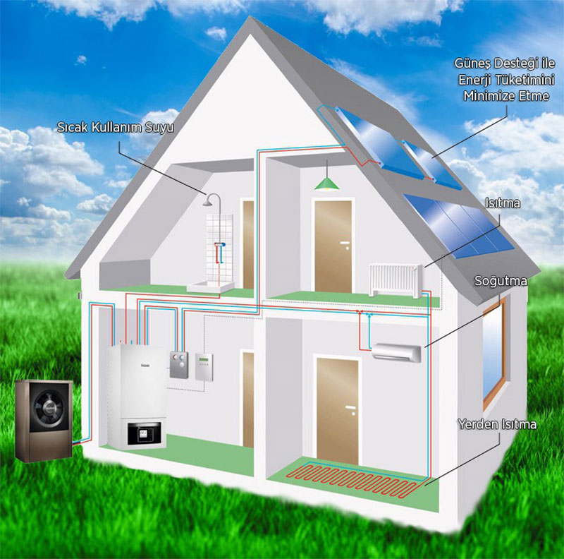 Tek cihazla ısıtma-soğutma-sıcak kullanım suyu imkânı sağlar.